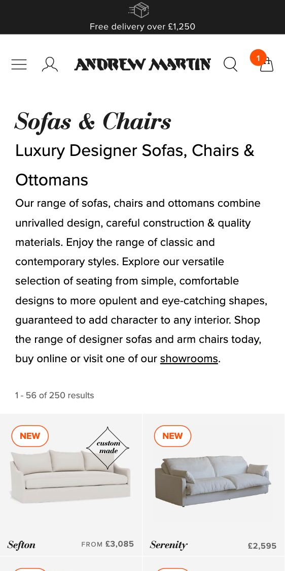 Andrew Martin's furniture is both made to order and fully customisable. The site integrates with Cylindo to generate a three-dimensional digital image of exactly what the finished piece will look like.