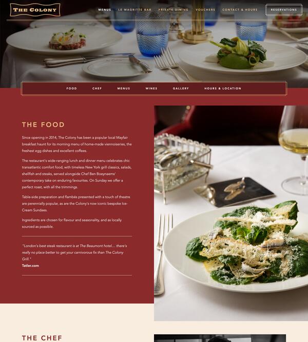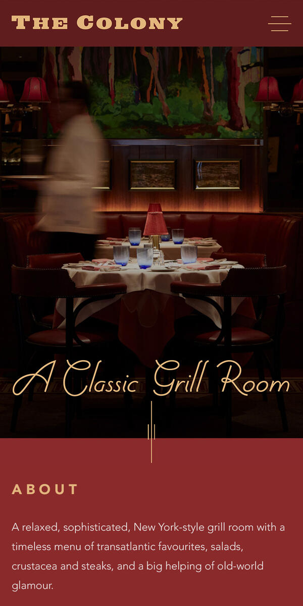 The destination restaurant at the iconic Beaumont Hotel in Mayfair. It is the proud winner of the Tatler 2016 'Best Front of House' Award for 'the art of professional but ever so gracious hospitality'